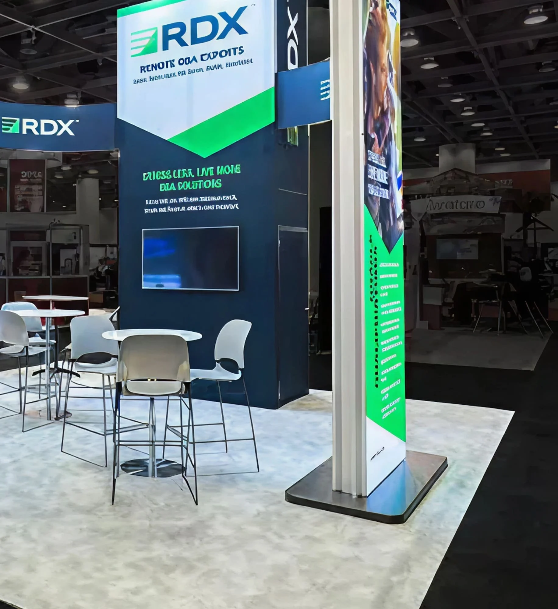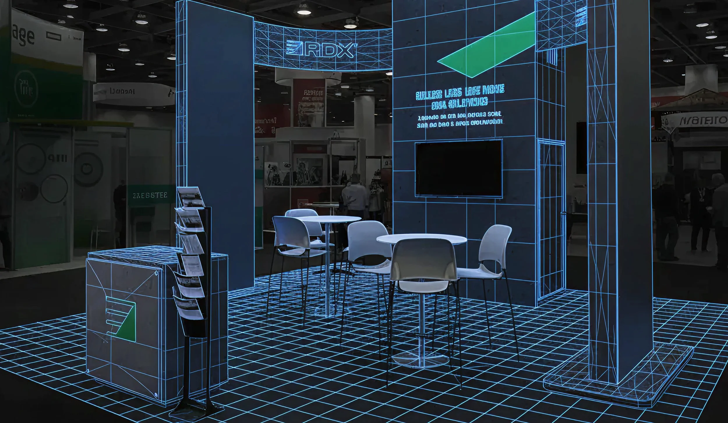 For 20×20 and larger booths, we create fully custom exhibits tailored to your brand, space, and objectives—supported end-to-end by our team.